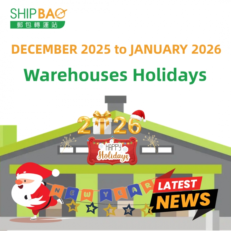 2025年12月至2026年1月倉庫假期如下 :   加拿大  25/12, 1/1  中國  1/1  中國香港總倉  25-26/12, 1/1  中國台灣  25/12, 1/1  法國  24-25/12, 31/12, 1/1  德國  25-26/12, 1/1  日本大阪  30/12-4/1, 12/1  日本東京  30/12-4/1, 12/1  韓國  25/12, 1-2/1  泰國  5/12, 10/12, 31/12, 1-2/1  英國  25-27/12, 1/1  美國德拉華州 (免稅倉及海運倉)  25/12, 1/1 ═══════════ 請留意安排取件 ═══════════ 倉庫休假期間將暫停入倉、出倉等作業,不便之處,敬請見諒‍ ! ═══════════ *倉庫假期或會有臨時改動,以此發佈為最後更新