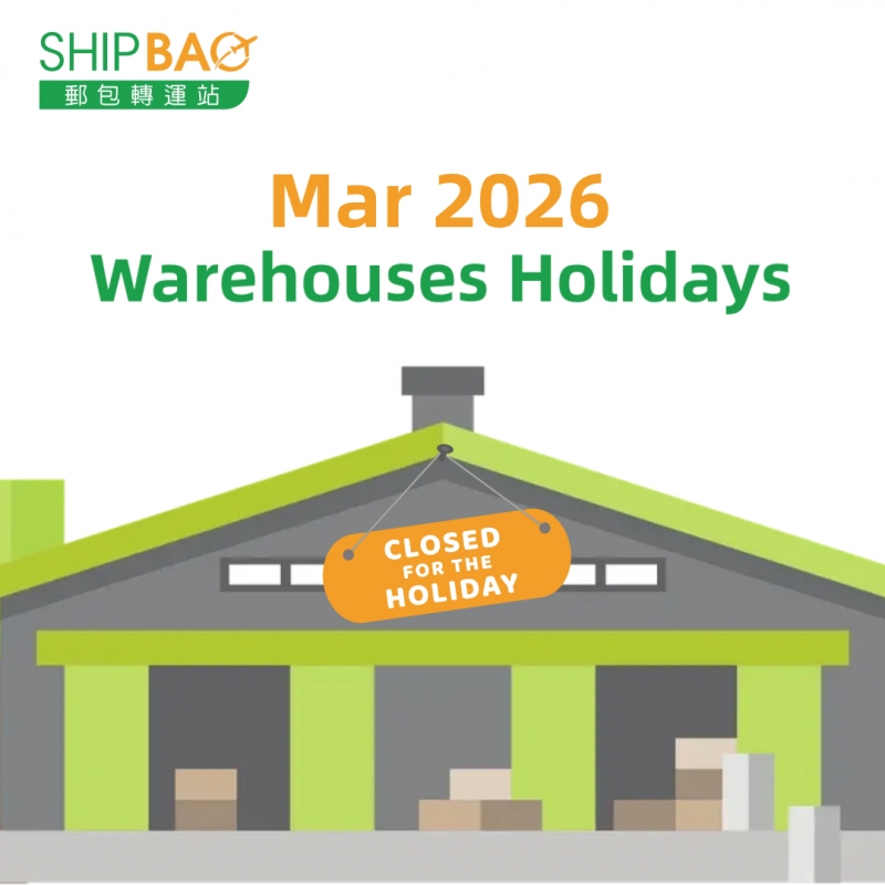 Warehouses will close for the holidays in Mar 2026 as below :