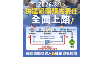 自 2026/3/1 (下週一) 起,凡海外進口至中國台灣的包裹將全面實施進口報關預先委任制。