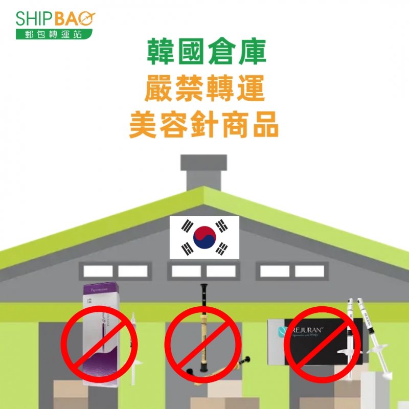 收到韓國通知海關嚴查美容針類產品,有關此類別之包裹,一律暫停轉運。