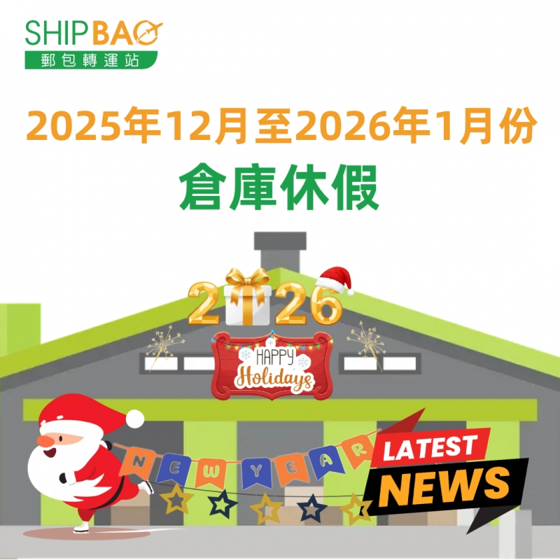 2025年12月至2026年1月仓库假期如下 :   加拿大  12/25, 1/1  中国  1/1  中国香港总仓  12/25-26, 1/1  中国台湾  12/25, 1/1  法国  12/24-25, 12/31, 1/1  德国  12/25-26, 1/1  日本大阪 12/30-1/4, 1/12  日本东京 12/30-1/4, 1/12  韩国  12/25, 1/1-2  泰国  12/5, 12/10, 12/31, 1/1-2  英国  12/25-27, 1/1  美国德拉华州 (免税仓及海运仓)  12/25, 1/1 ═══════════ 请留意安排取件 ═══════════ 仓库休假期间将暂停入仓丶出仓等作业,不便之处,敬请见谅‍ ! ═══════════ *仓库假期或会有临时改动,以此发布为最後更新