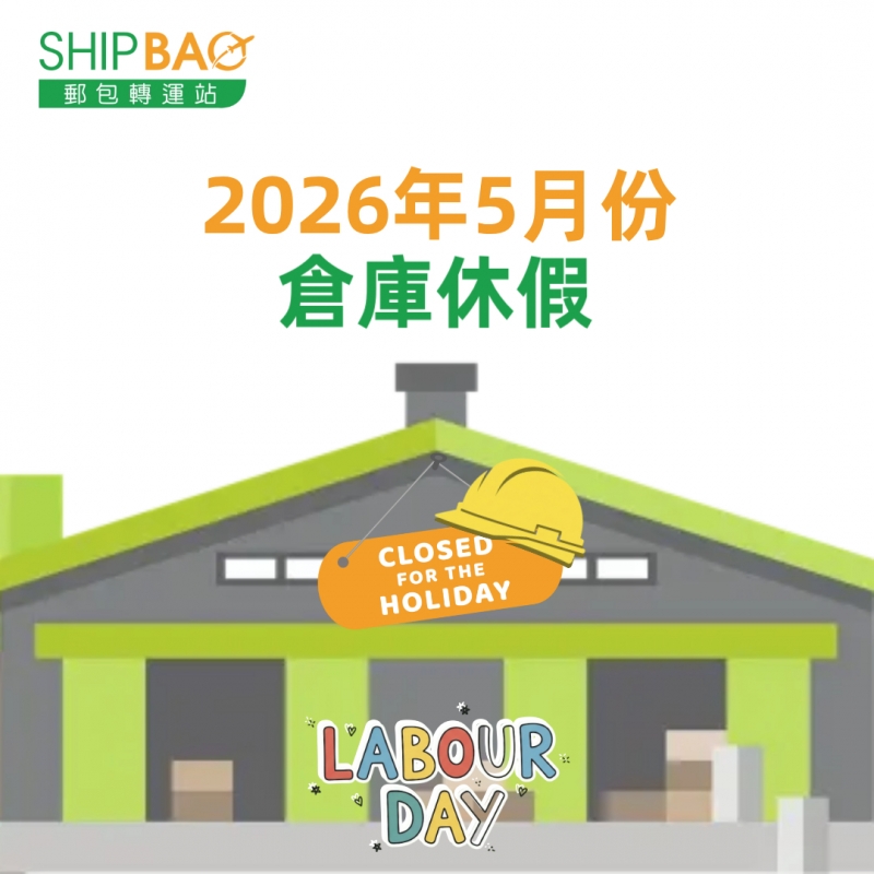 2026年5月仓库假期如下 :   加拿大  5/18  中国  5/1  中国香港总仓  5/1, 5/25  中国台湾  5/1  法国  5/1, 5/8, 5/14, 5/25  德国德勒斯登  5/1, 5/14, 5/25  德国自营  5/1, 5/14, 5/25  日本大阪  5/4-6  日本东京  5/4-6  韩国 5/1, 5/5, 5/25  泰国  5/1, 5/4, 5/11, 5/31  英国  5/4, 5/25  美国德拉华州 (免税仓及海运仓) 5/25 ═══════════ 请留意安排取件 ═══════════ 仓库休假期间将暂停入仓丶出仓等作业,不便之处,敬请见谅‍ ! ═══════════ *仓库假期或会有临时改动,以此发布为最後更新