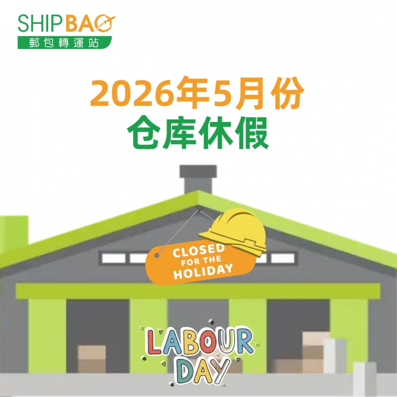 2026年5月倉庫假期如下 :   加拿大  18/5  中國  1/5  中國香港總倉  1/5, 25/5  中國台灣  1/5  法國  1/5, 8/5, 14/5, 25/5  德國德勒斯登  1/5, 14/5, 25/5  德國自營  1/5, 14/5, 25/5  日本大阪  4-6/5  日本東京  4-6/5  韓國  1/5, 5/5, 25/5  泰國  1/5, 4/5, 11/5, 31/5  英國  4/5, 25/5  美國德拉華州 (免稅倉及海運倉)  25/5 ═══════════ 請留意安排取件 ═══════════ 倉庫休假期間將暫停入倉、出倉等作業,不便之處,敬請見諒‍ ! ═══════════ *倉庫假期或會有臨時改動,以此發佈為最後更新