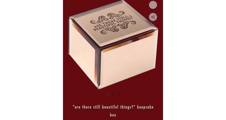 Taylor Swift官方周邊,鏡面亞加力膠金色紀念品盒,尺寸5"x4"x4"。為上面刻有“folkore”專輯中歌曲“seven”的歌詞“are there still beautiful things?”,非常適合將你心目中的beautiful things放進去珍藏。