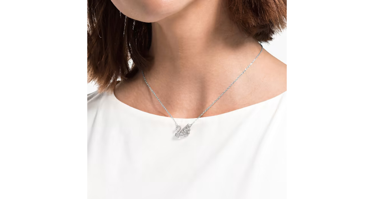 象徵優雅及高貴,是Swarovski首飾的完美標誌。而這款美不勝收的鍍白金色項鏈,其天鵝裝飾上綴有大量閃亮迷人的白色Swarovski水晶,中央更飾有一顆大尺寸、採用了「躍動水晶」概念的Swarovski水晶。璀璨悅目的設計,是送給特別的他/她的最佳禮物 香港售價:HKD1160