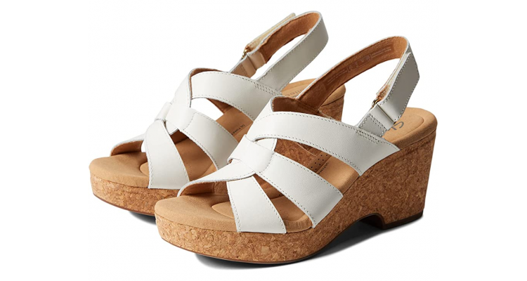 這款羅馬交叉式的坡跟鞋絕對是夏日必備涼鞋。 白色的羅馬交叉綁帶式鞋面散發出別緻的夏日氣息。 紡織襯里和具備彈性的鞋墊底,穿著上腳時非常舒適。 美國折後價:HKD655(USD83.56)